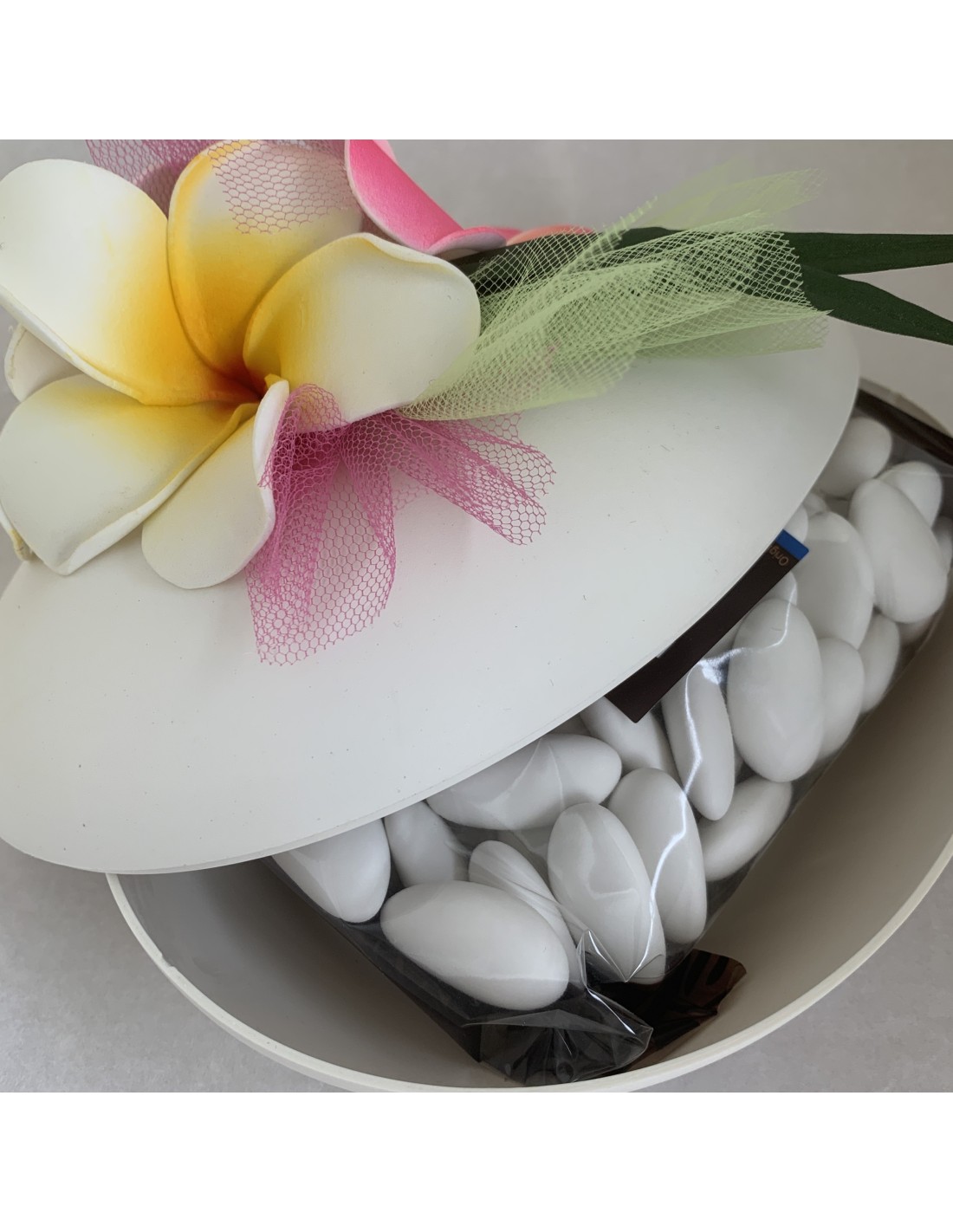 Exotique Galet décor frangipani avec 250 grms de dragées.