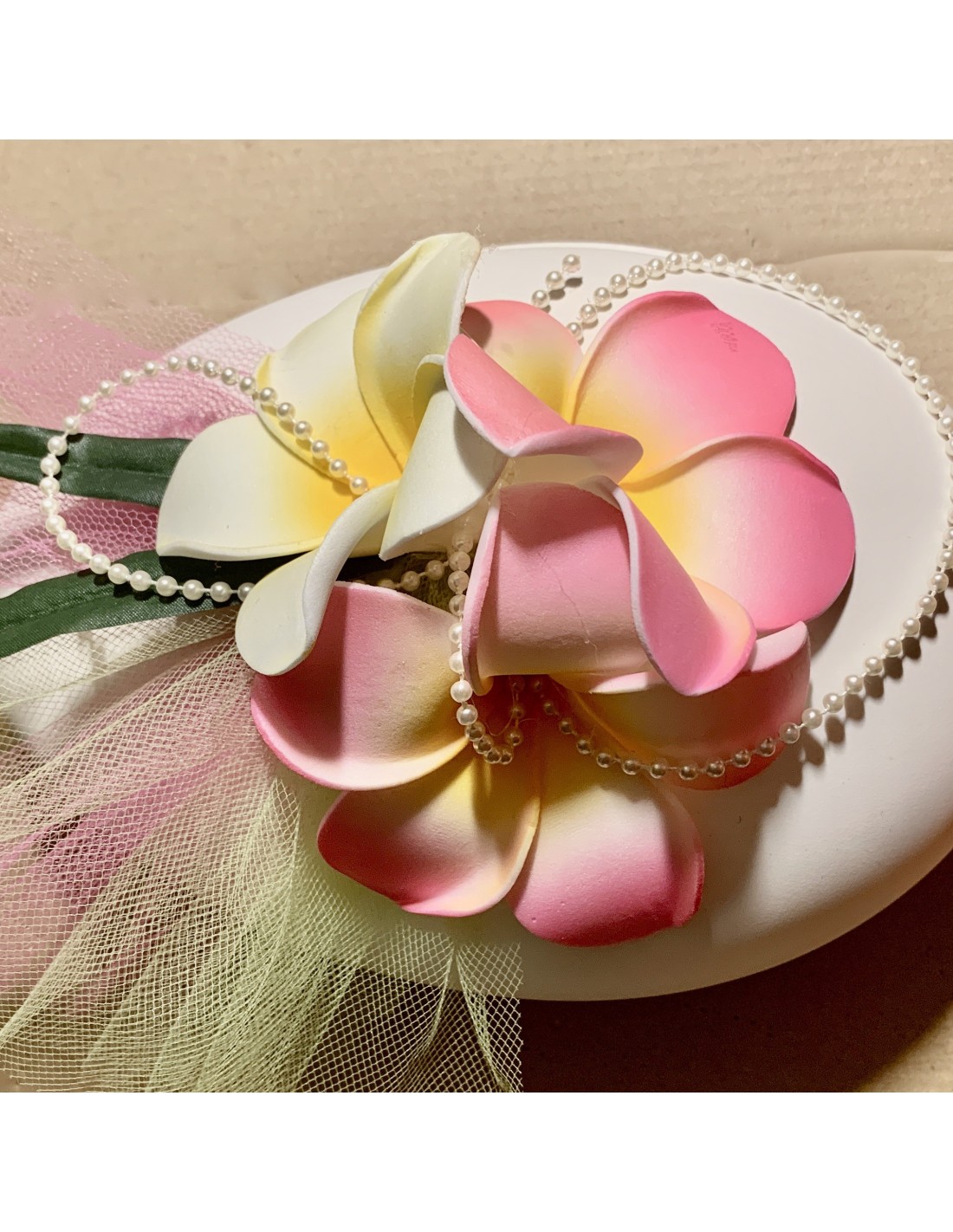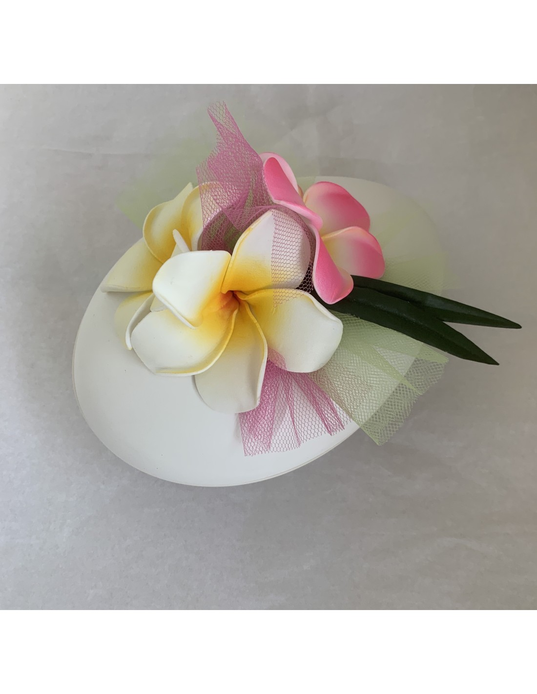 Galet sepérable blanc décor de fleur artificial et tulle.
