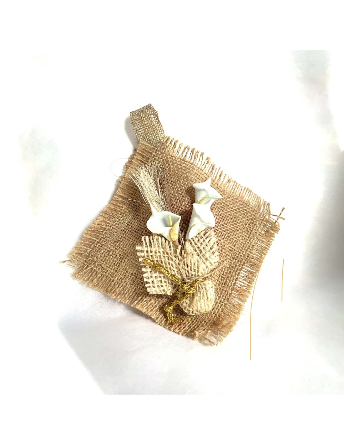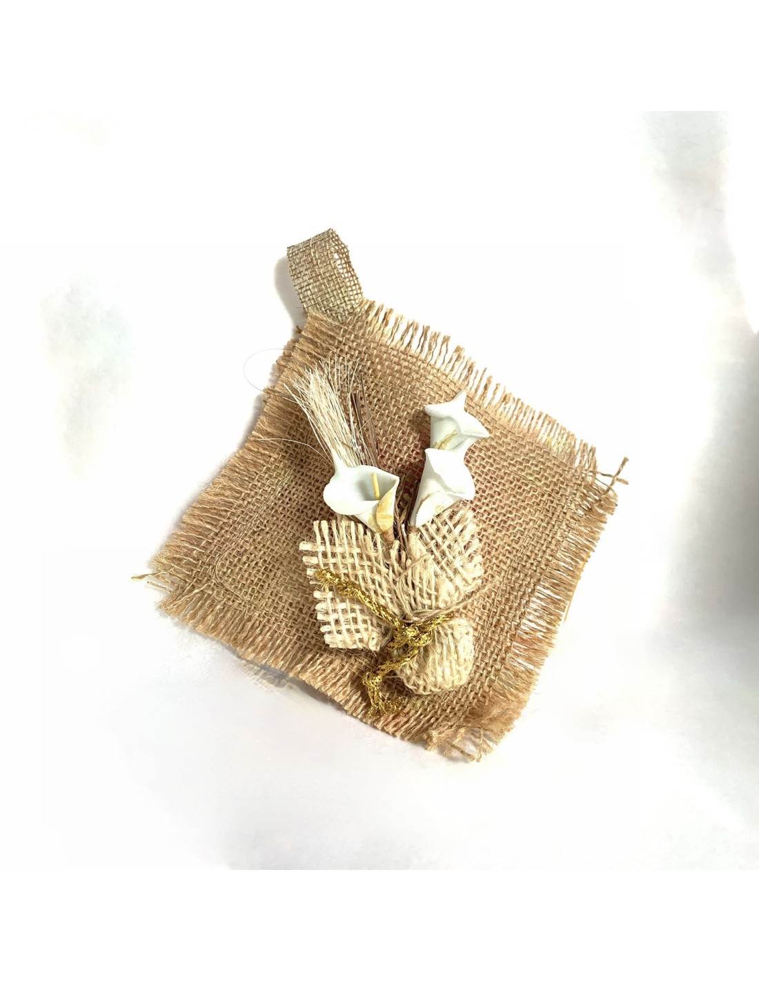Emballage pour dragées tissu jute très tendances simplicité avec les mini arômes, petit ouverture pour glisser les 5 dragées .