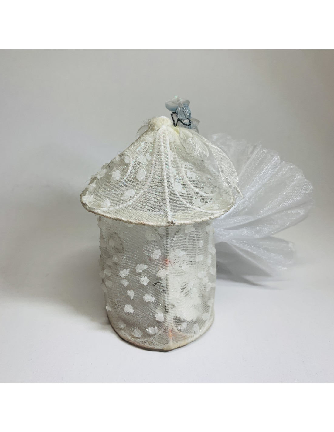 Livrée avec 5 dragées aux amandes. Tulle rose. Les couleurs de tulle et des dragées sont modifiables à votre choix.