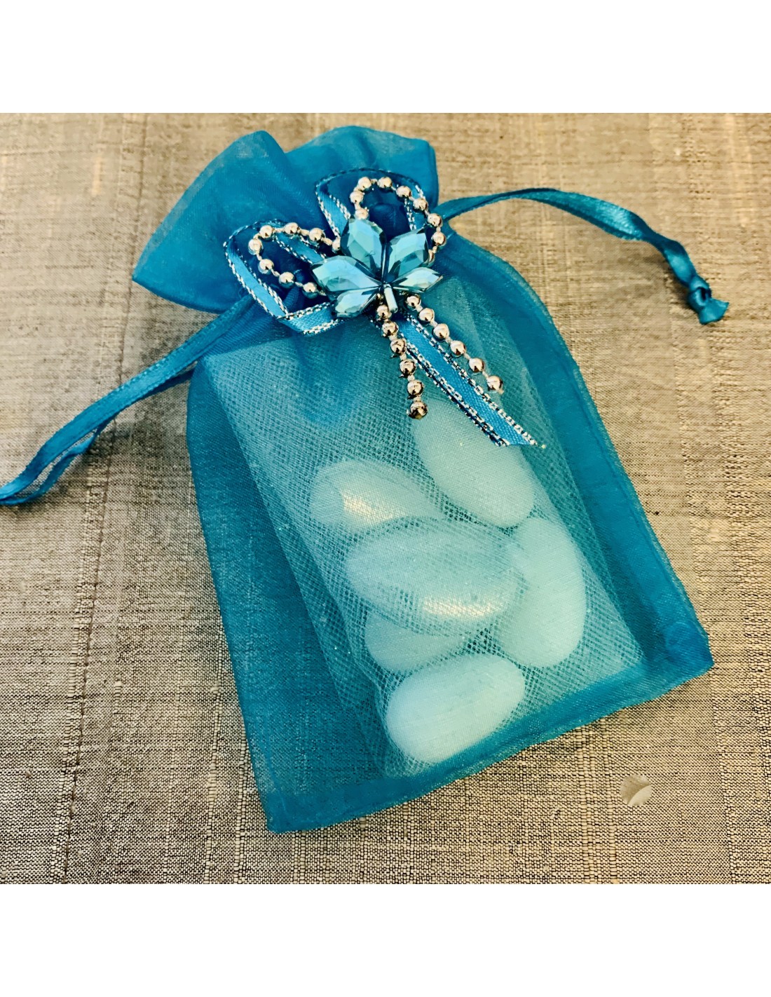 Petit sachets blanc en organdi Pochon blanc pour mariage.