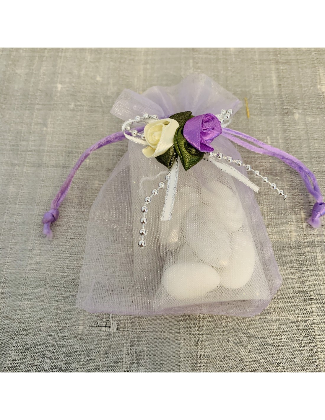 Pochon parme en organdi .
