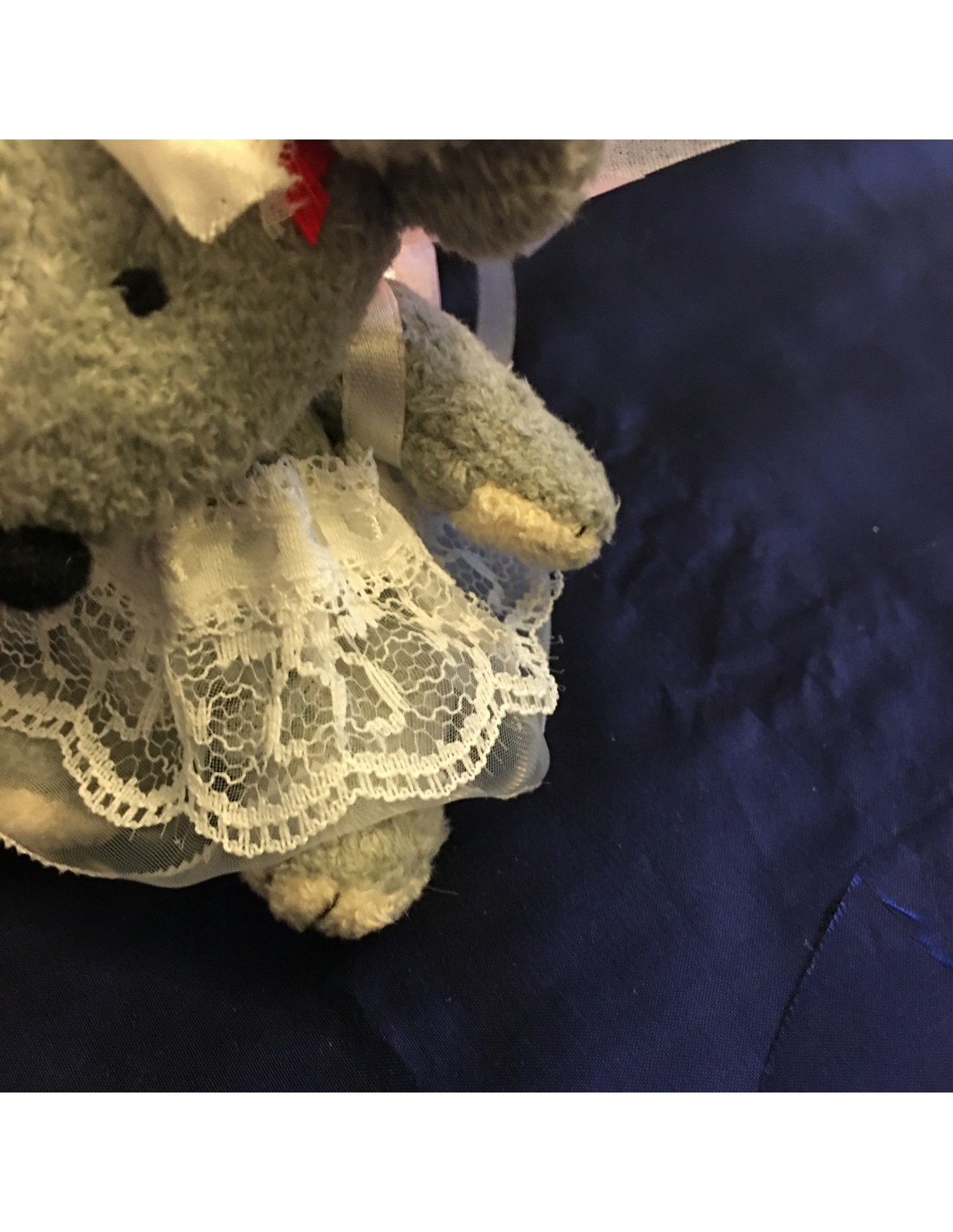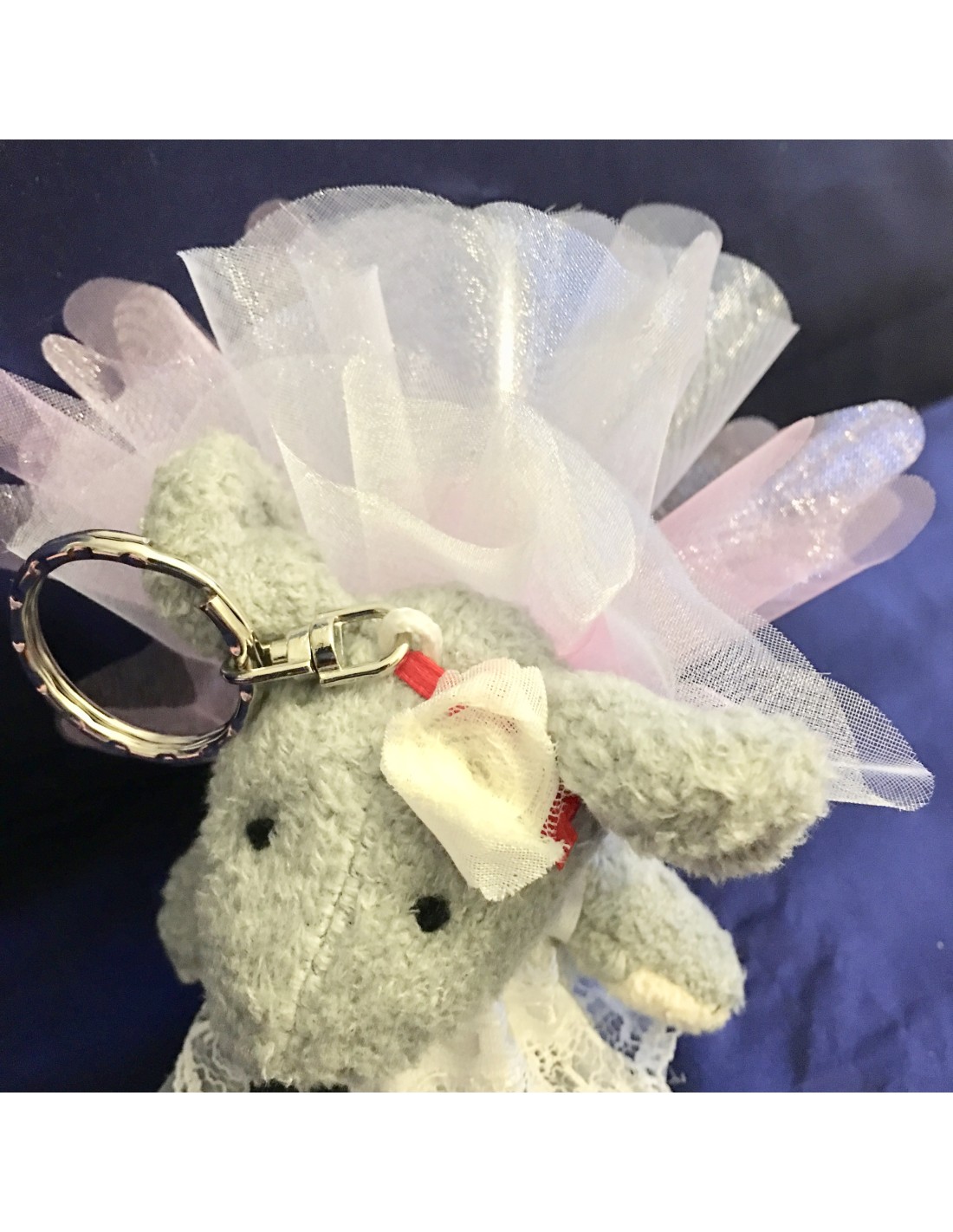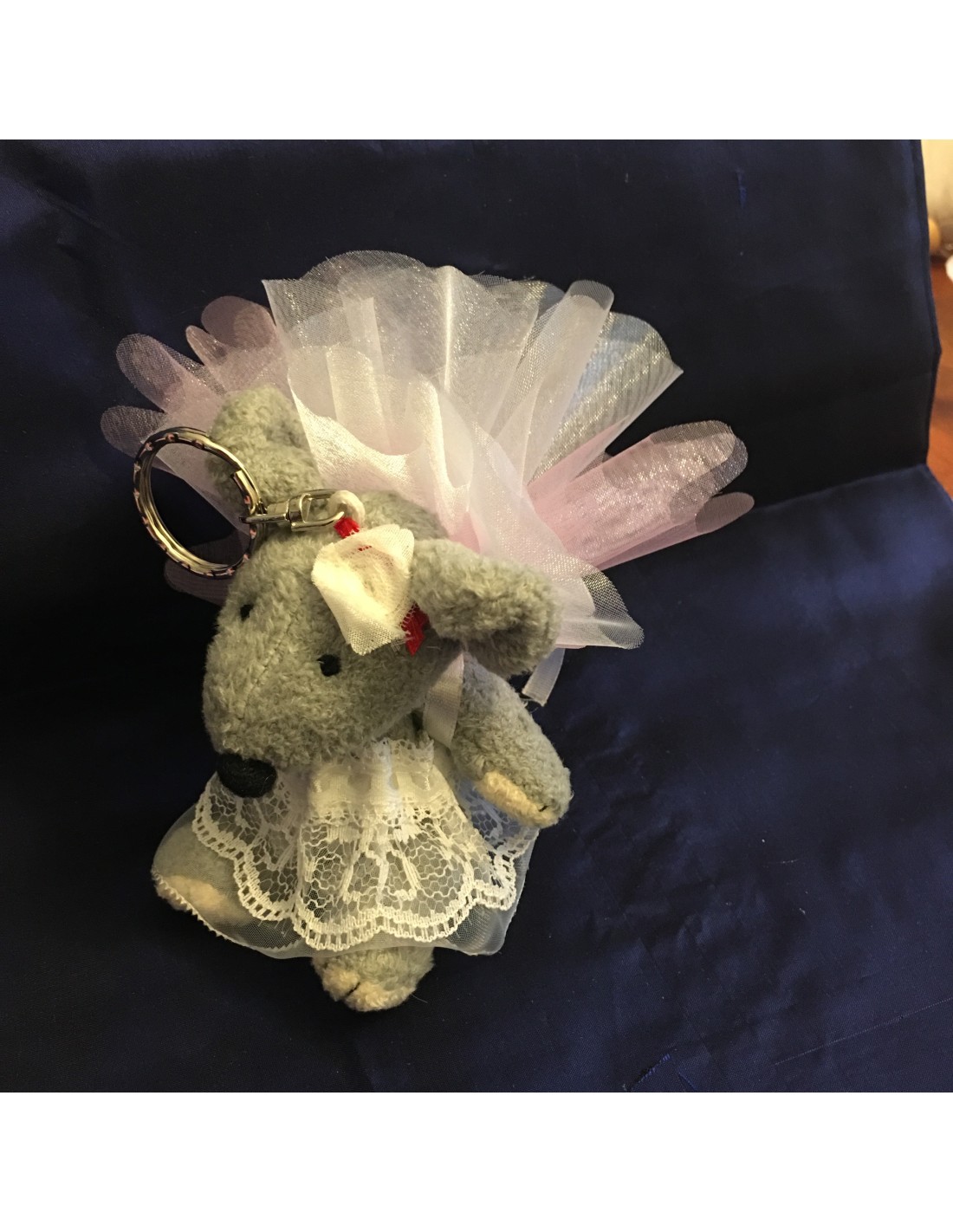 Adorable souris montée en porte-clefs avec son jupon dentelle blanche,