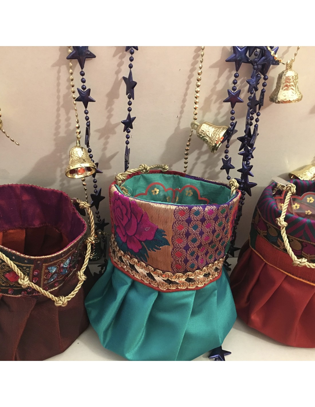 Ballotin Pothli multi color en soie. Plus 150 grammes de chocolats.