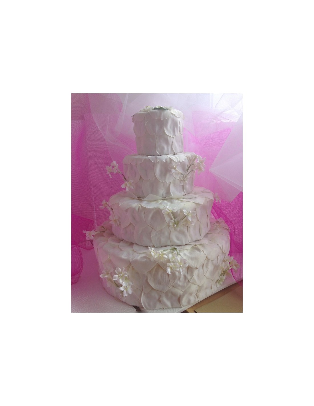 Four-tier cake for decorating purposes dainty flowers with pearls, petals covers cake