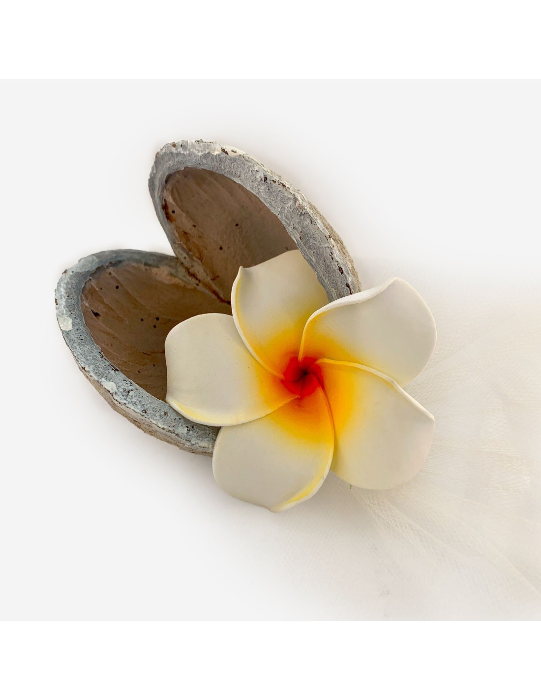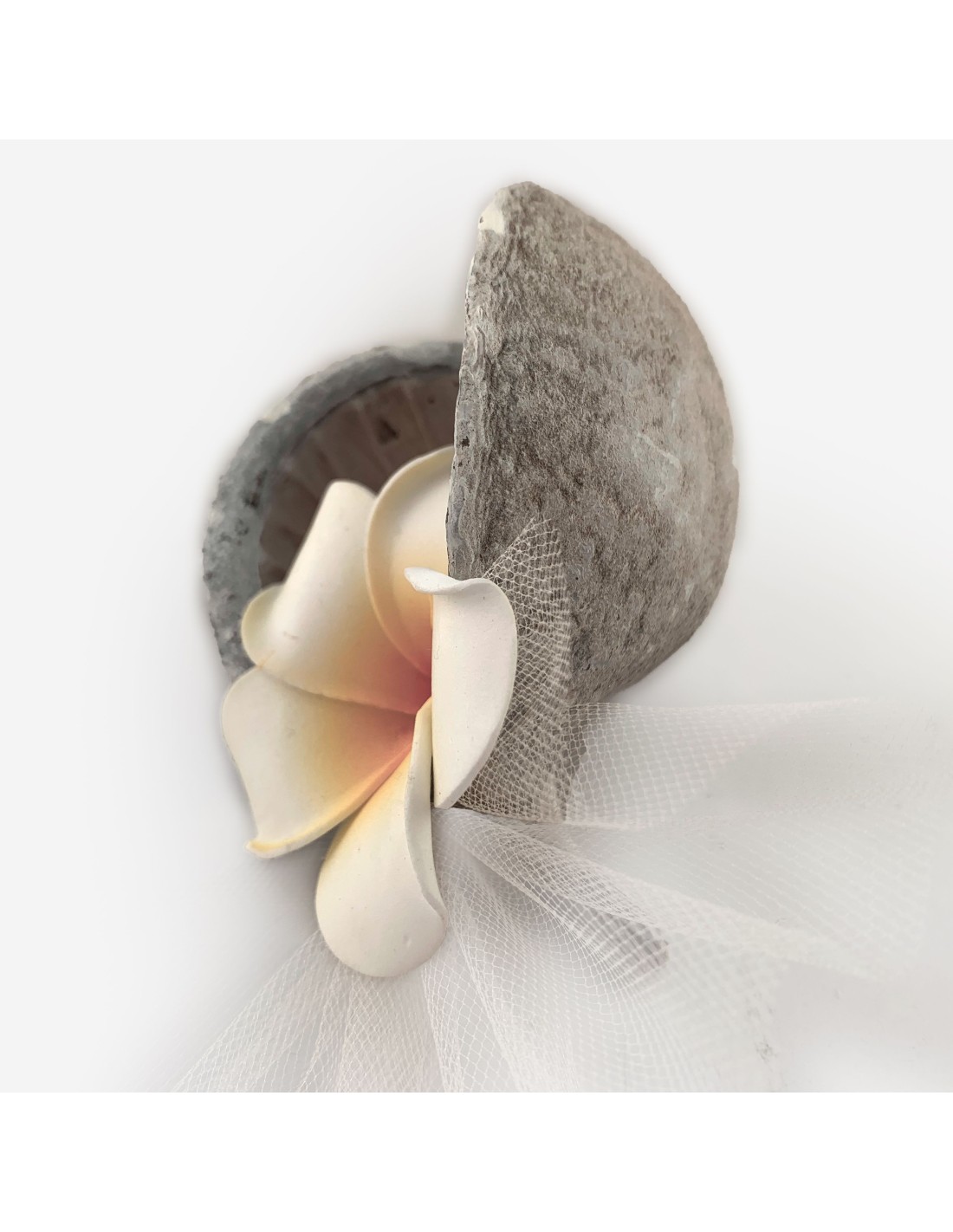 Notre Bonbonnière Buddha Nut est ornée d'une orchidée verte et rubis.