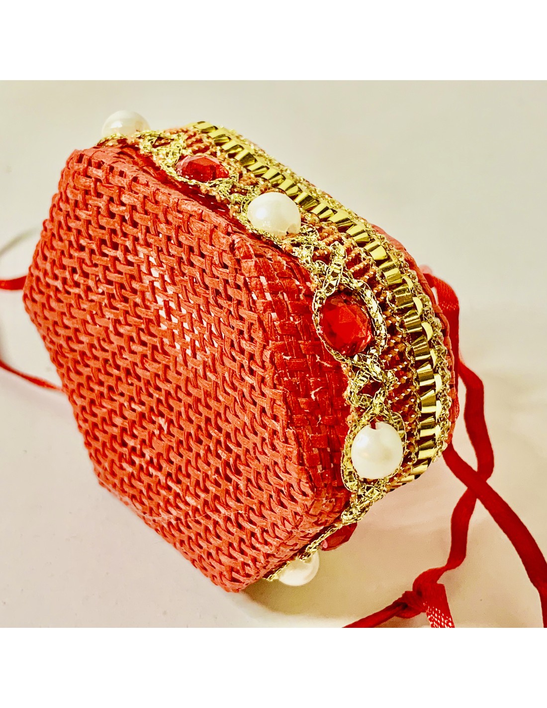 Red raphia basket with a oriental touch suitable for exotic theme.