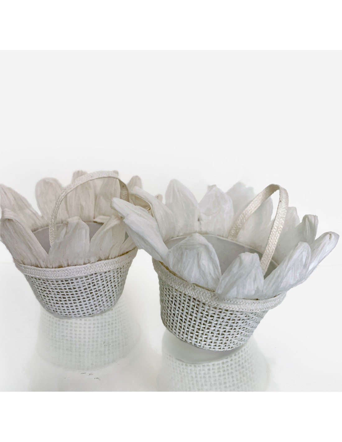 En option fini notre mini panier, est livré avec 2 tulles et 5 dragées Vous pouvez aussi garnie de panier avec nos mini  calissons de parfum rose ,glacage couleur rose .
