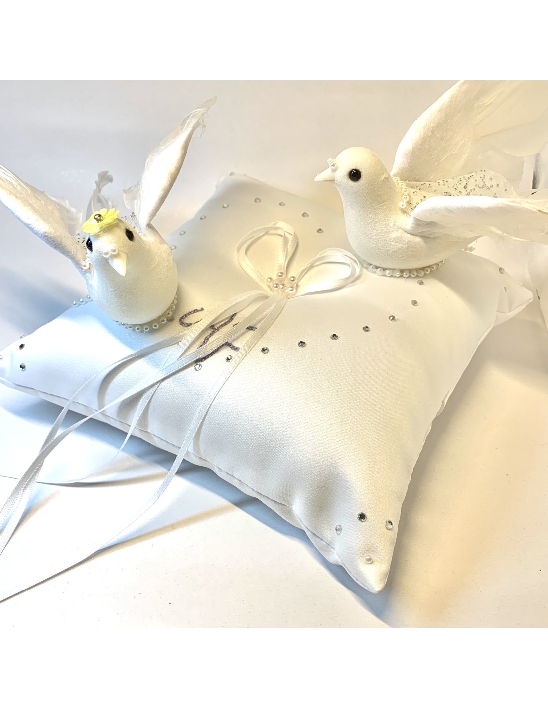 Mariage coussin perles porte alliances
