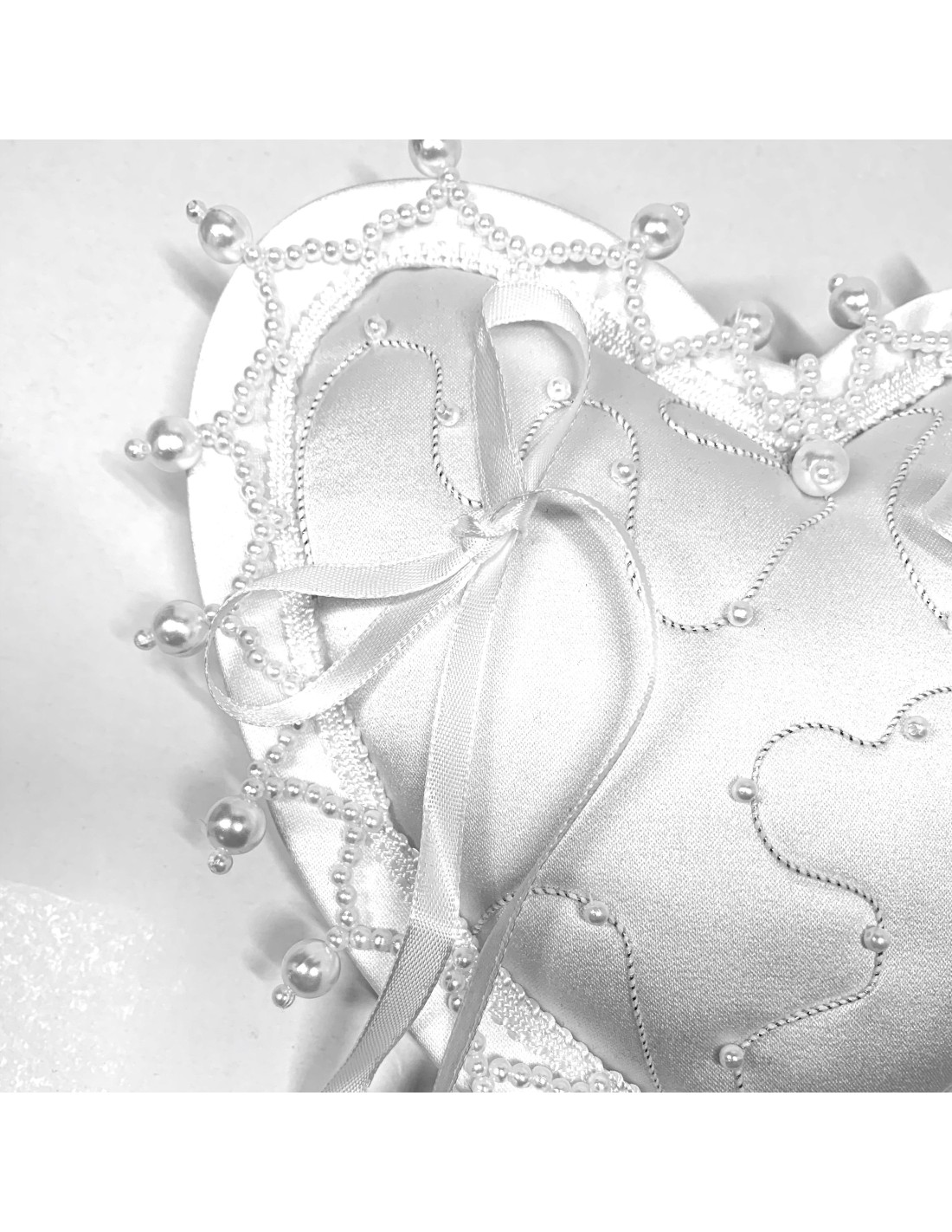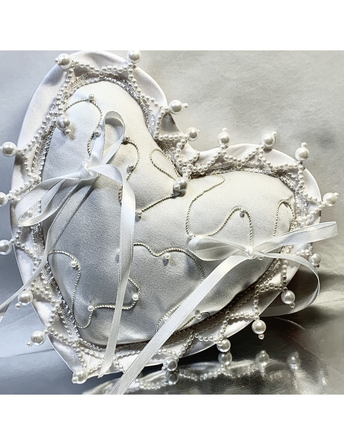 Coussin unique en forme de coeur avec les perles autour en blanc