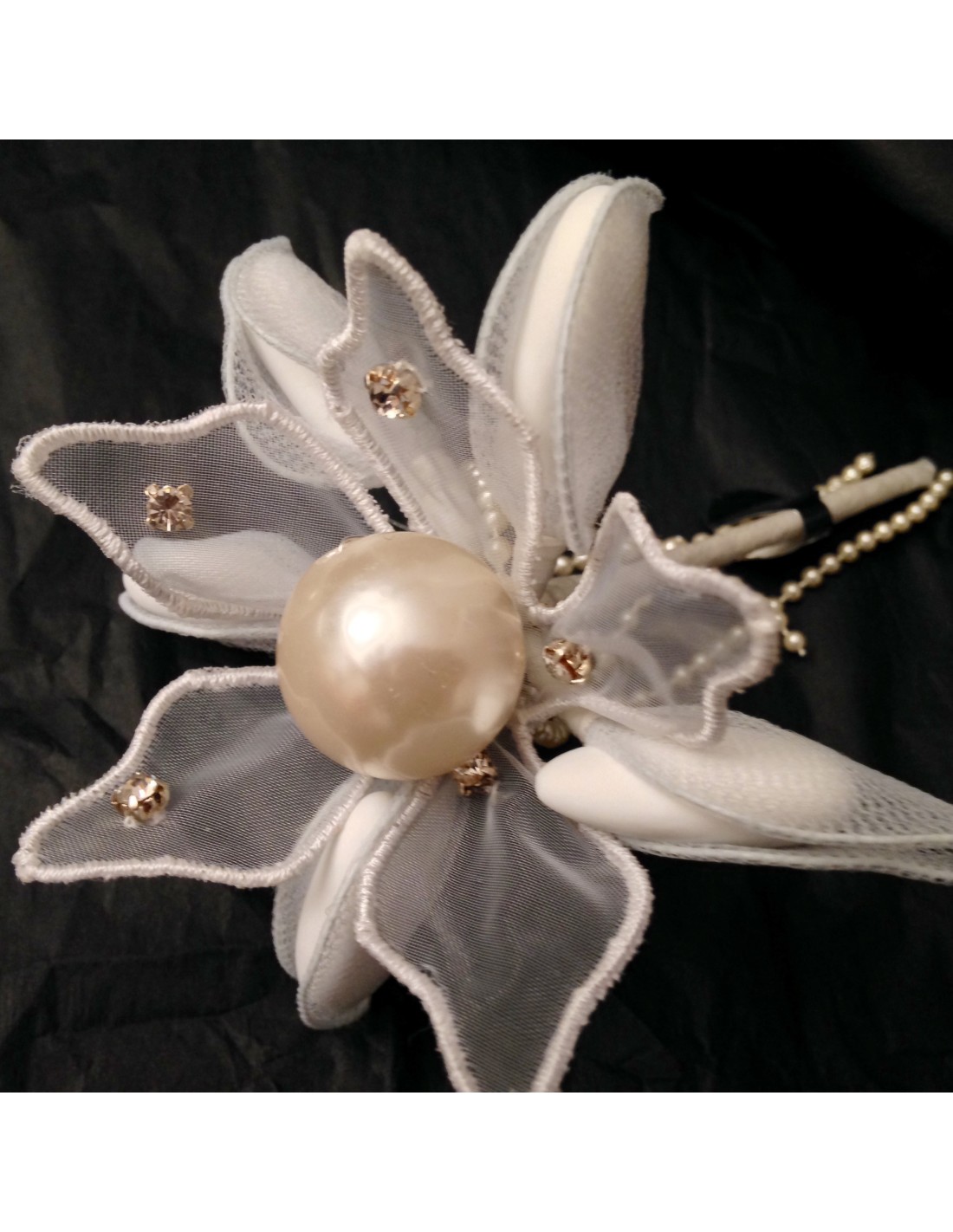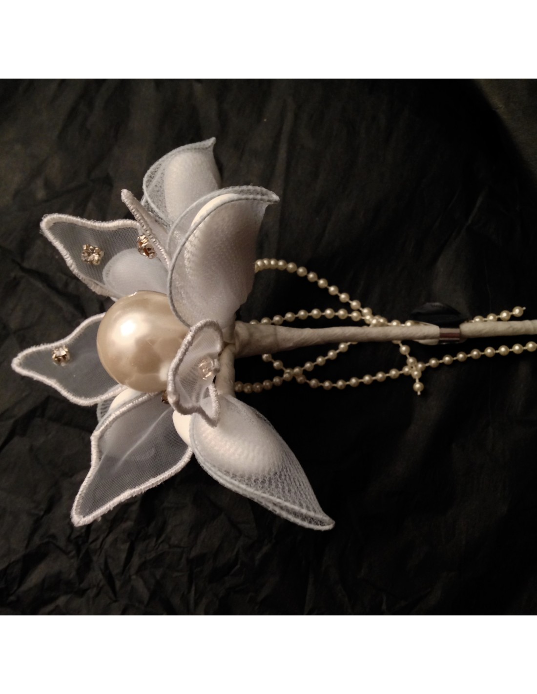 terminez avec des liens de pearls a la place de ruban.Création existe uniquement en blanc Livrée avec 5 dragées dans chaque pétale