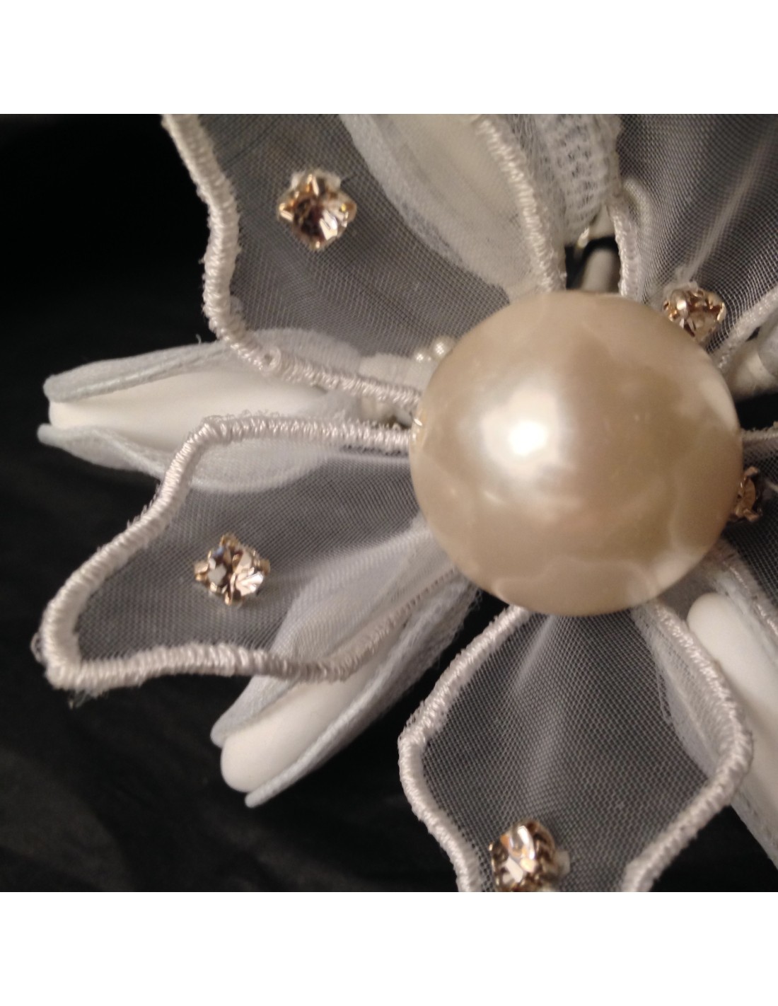 Mega pearl délicatement poser sur une fleur transparent  blanche agrémenté de strass