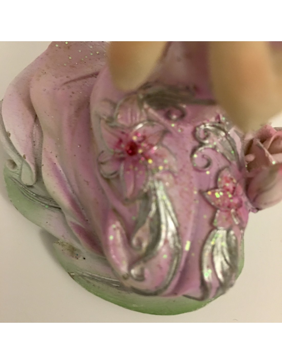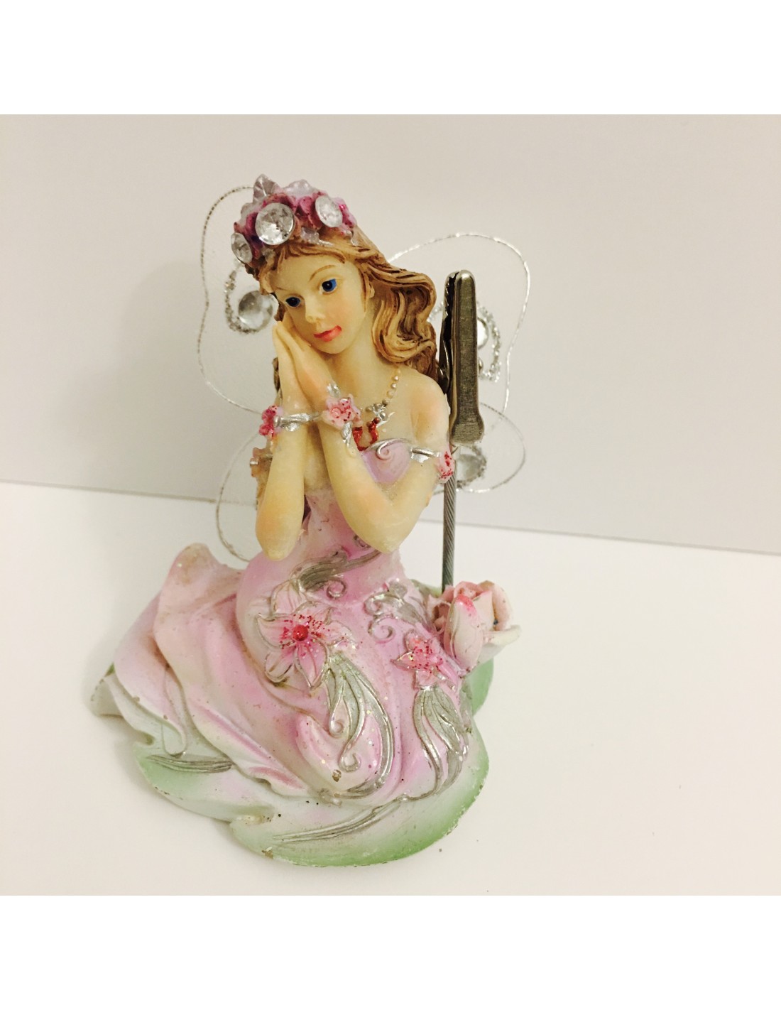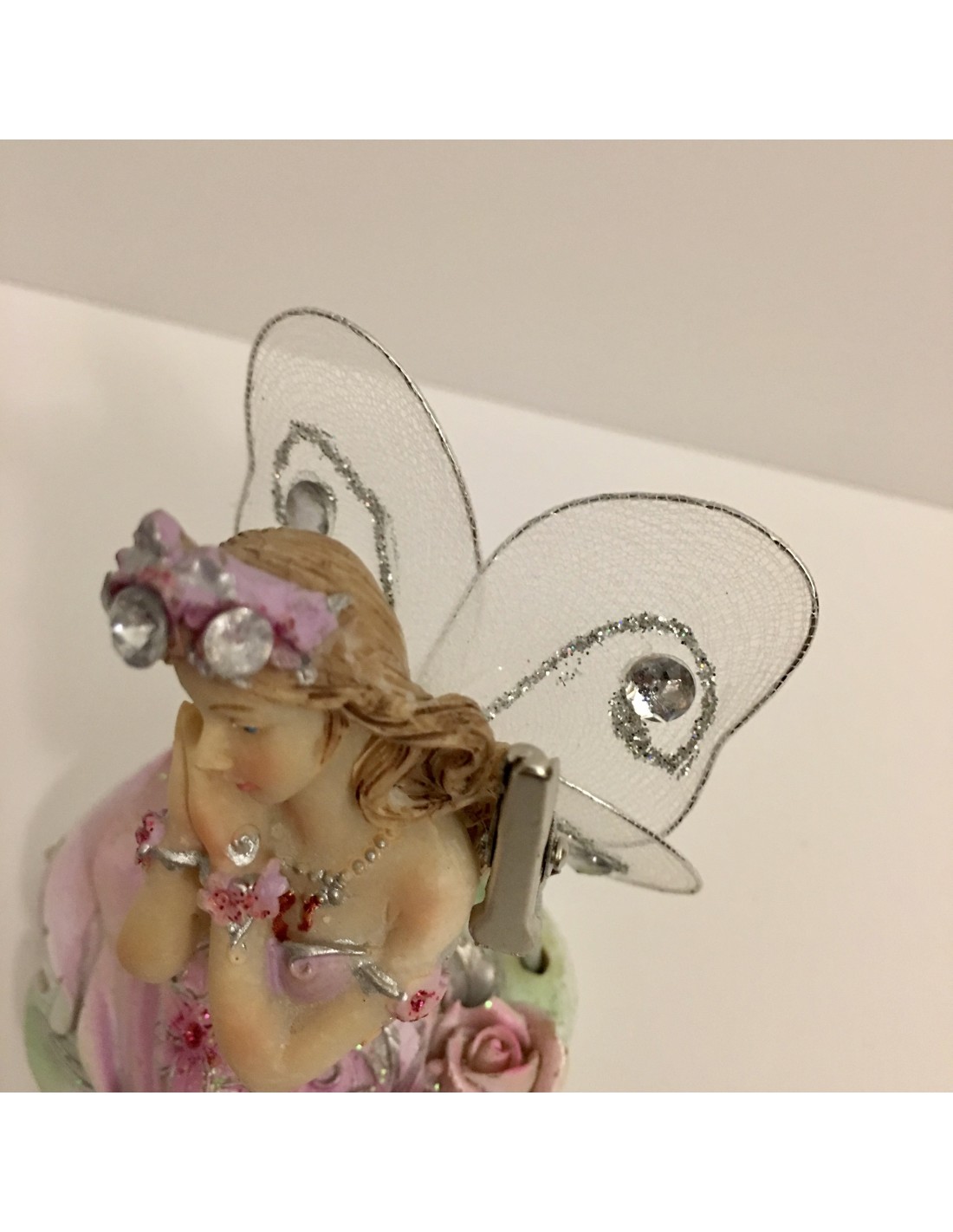 Figurine elfe porte photo ballotin avec tulle rose et vert et 5 dragées inclus