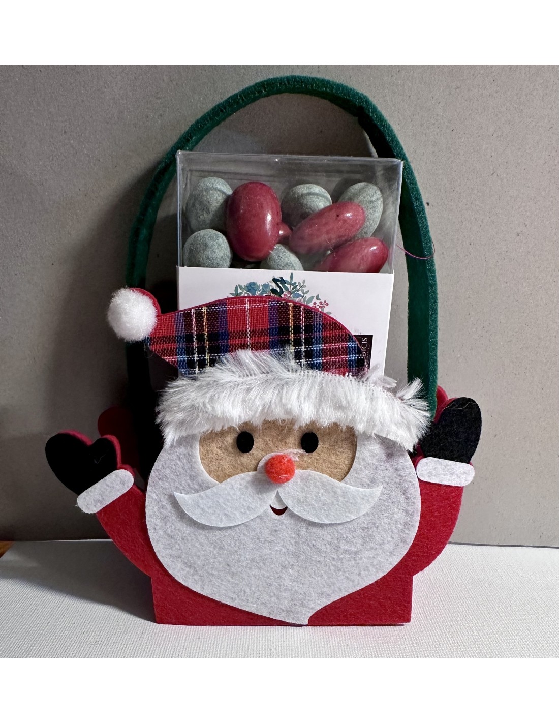 Panier Père Noël avec chapeau à carreaux. Tissu feutrine