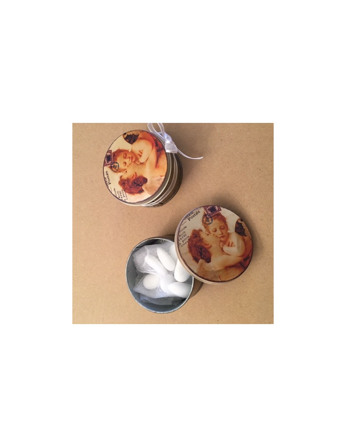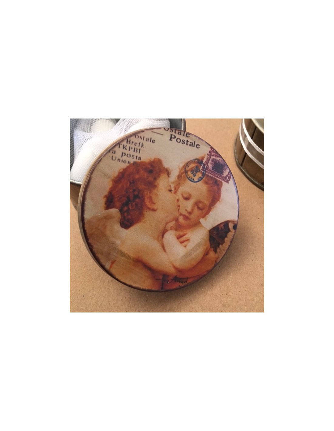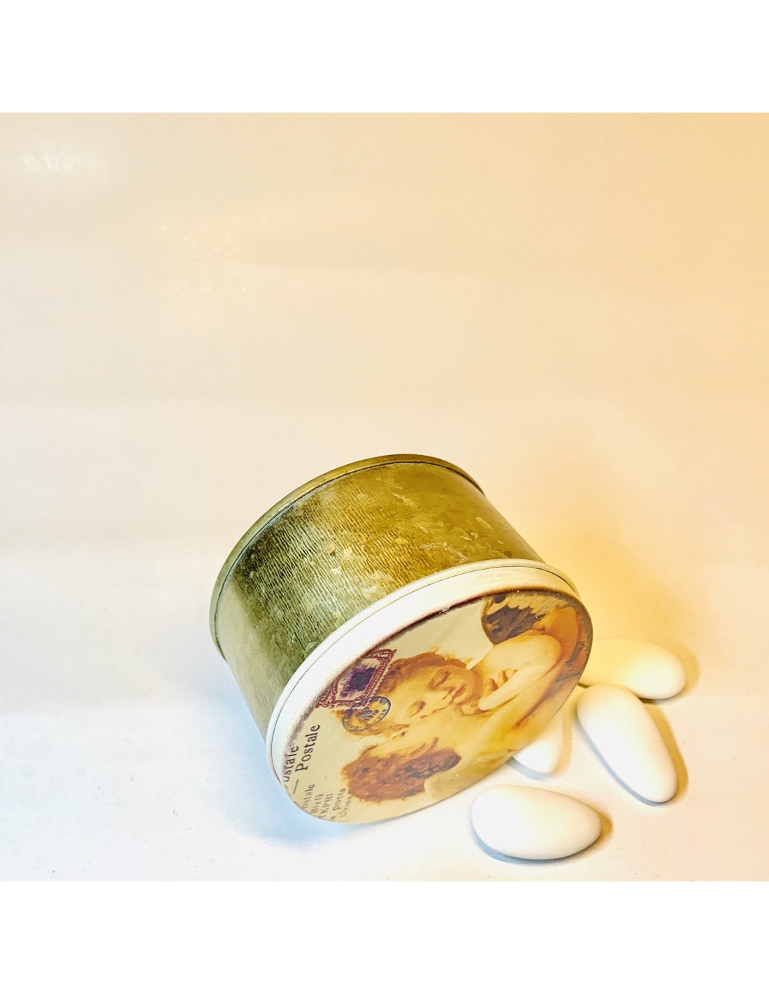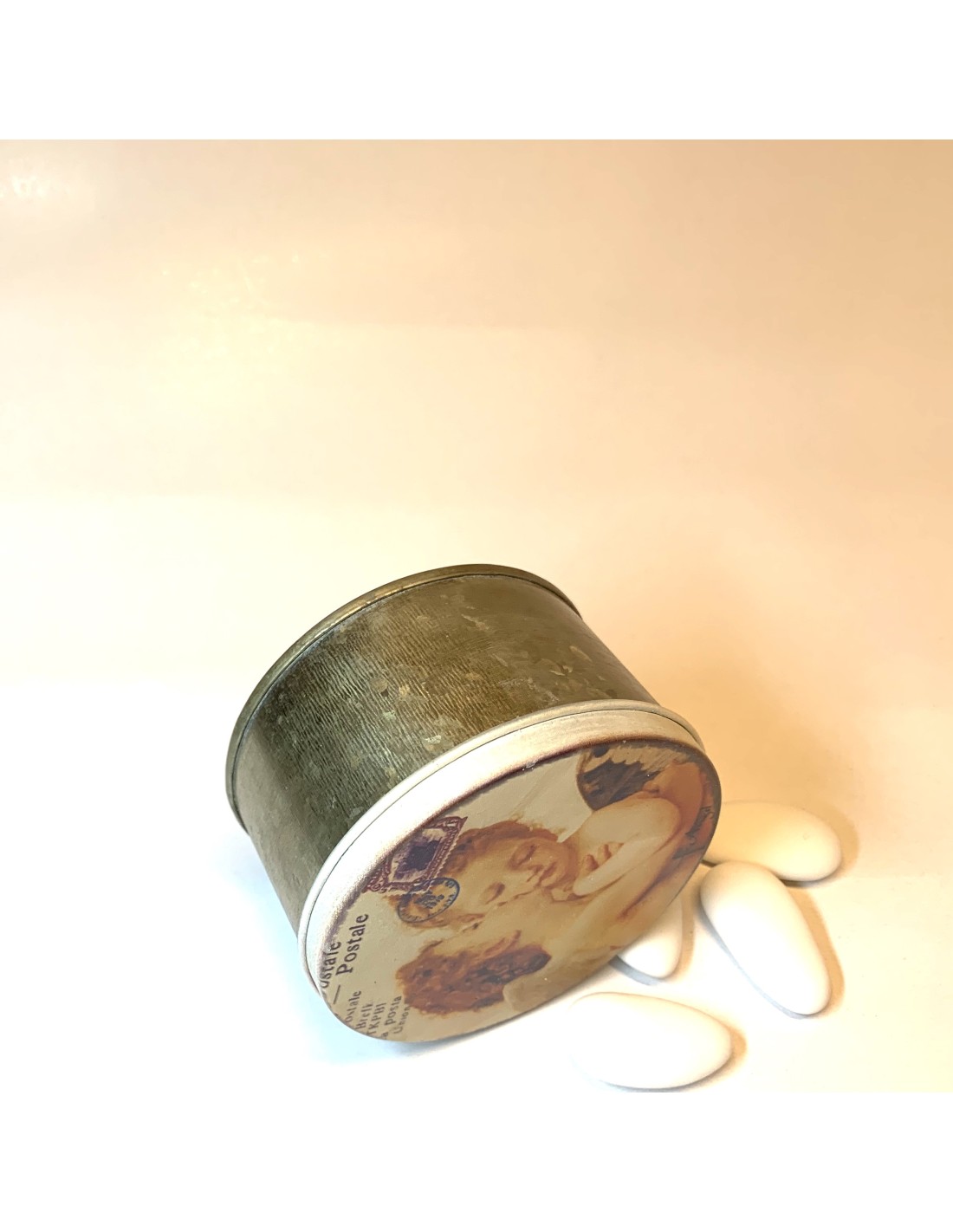 Boite ronde métal style vintage ,couvercle impressions des anges très angélique,