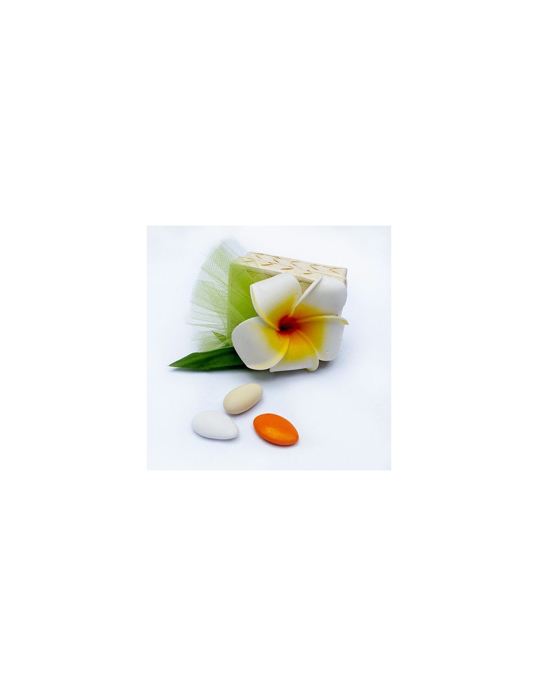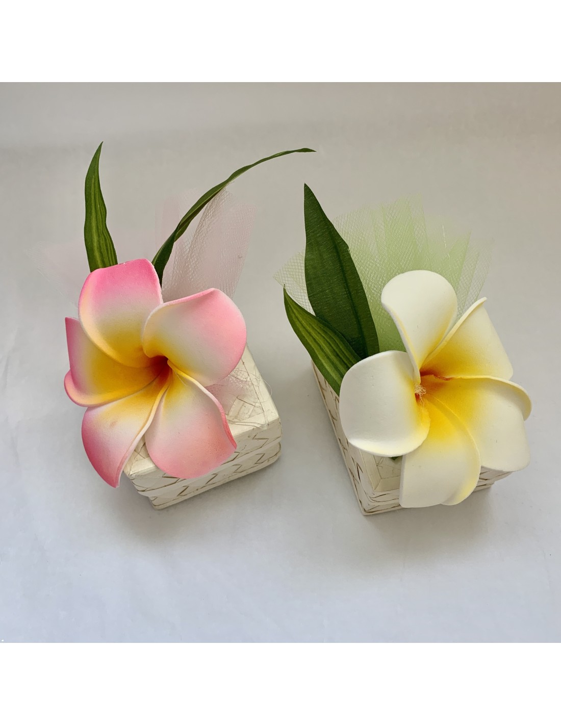 Mariage sur une île, offrir ces jolies boites tressée  décor fleur frangipanier
