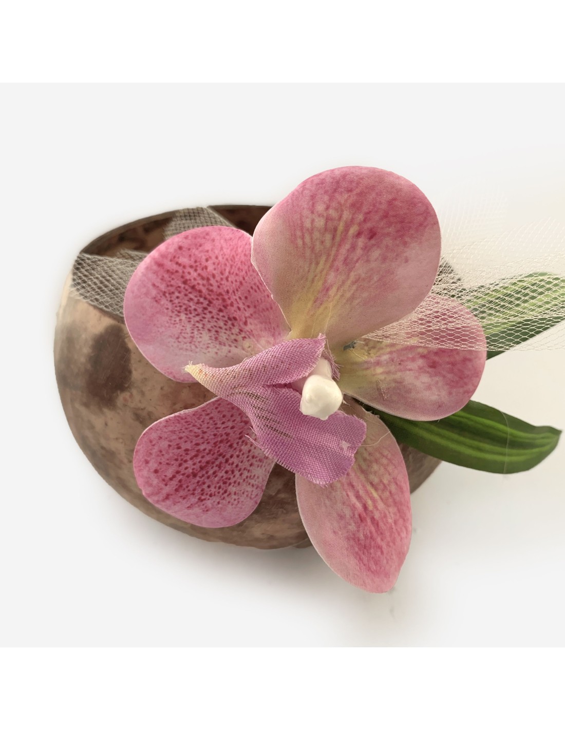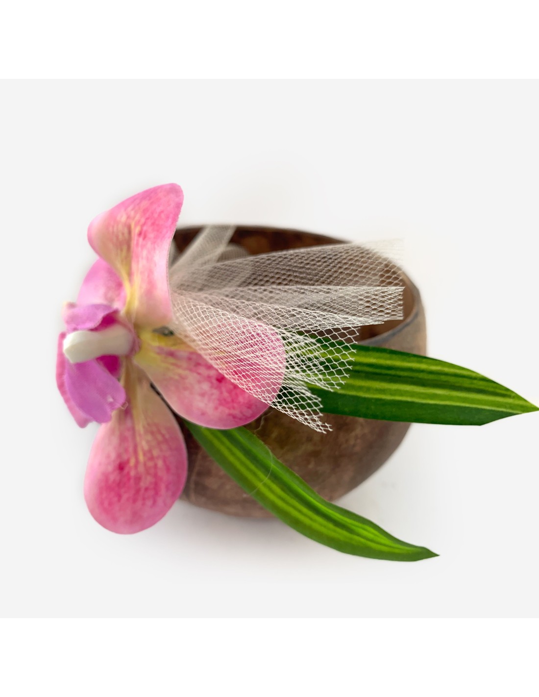 Authentique produit en noix de coco simple et original. Couleur naturel et présenter les gourmandises pourquoi pas .Nous avons fait plus ,ajouter un décor triés exotique avec une fleur aussi exotique .Hauteur 9 cm et diamètre 8 cm.